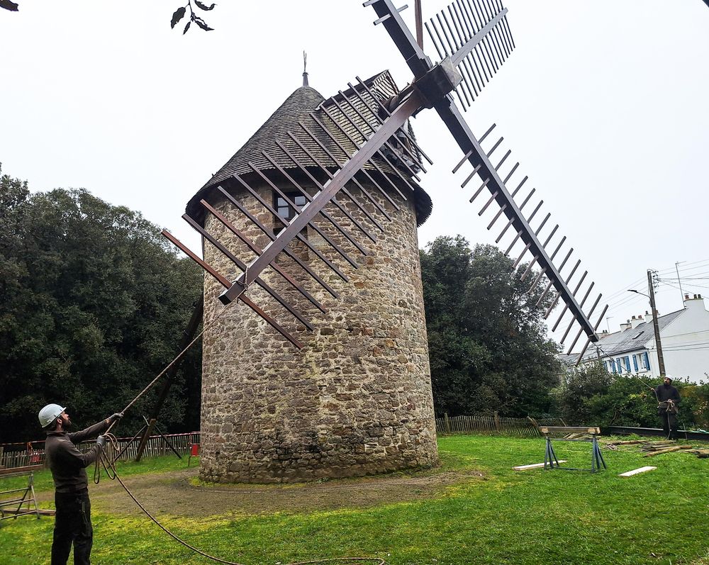 Entièrement restauré en 2015, le mécanisme du moulin (arbre principal et ailes) a subi une attaque de champignon favorisée par une fuite de la toiture qui a atteint à coeur ces pièces structurantes. Aujourd'hui le moulin ne peut plus tourner. Par mesure de sécurité, les pièces ont été déposées. Le projet consiste à remplacer l'arbre moteur et les ailes du moulin. Depuis la restauration de 2015, des photos anciennes ont permis de retrouver la physionomie exacte des ailes. La restauration à venir sera donc plus conforme à l'histoire du moulin en respectant le gabarit et le dessin des ailes. Ce chantier est soutenu par l'association des Amis du Croisic à l'origine du projet de restauration du moulin et qui assure depuis l'animation et les visites de découverte.