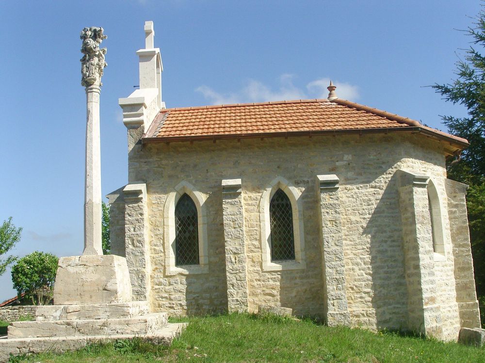 Construite sur la roche en 1882, la chapelle de Dingier témoigne de la ferveur des habitants de l’époque et d’un savoir-faire architectural remarquable. Orientée est-ouest, elle séduit par son harmonie : toiture à trois pans, plafond blanc orné de frises, murs décorés de fleurs de lys. Située dans l’Ain, en région Auvergne-Rhône-Alpes, elle s’inscrit dans un territoire riche en patrimoine, entre Bourg-en-Bresse, son monastère royal de Brou classé monument historique, et les paysages naturels préservés du Revermont. Le site de Dingier, accessible aux promeneurs et randonneurs, s’intègre à un itinéraire de découverte apprécié des visiteurs. Restaurer cette chapelle, c’est préserver un repère culturel et spirituel, mais aussi renforcer l’attractivité touristique de la commune et de ses environs.