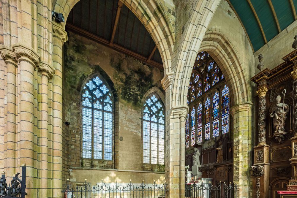 Située au cœur de Saint-Pol-de-Léon, la chapelle Notre-Dame du Kreisker est un édifice majeur du patrimoine breton, aujourd’hui fragilisé par de nombreux désordres. Les infiltrations d’eaux pluviales, l’usage inadapté du ciment et le manque d’entretien ont entraîné une dégradation générale des maçonneries et un développement de mousses et végétaux. Les vitraux, en mauvais état, présentent un risque pour le public. Le projet prévoit une restauration complète : reprise des maçonneries, réfection de la couverture, amélioration de l’évacuation des eaux, sécurisation et restauration des vitraux, ainsi que le remplacement et la restauration de menuiseries.