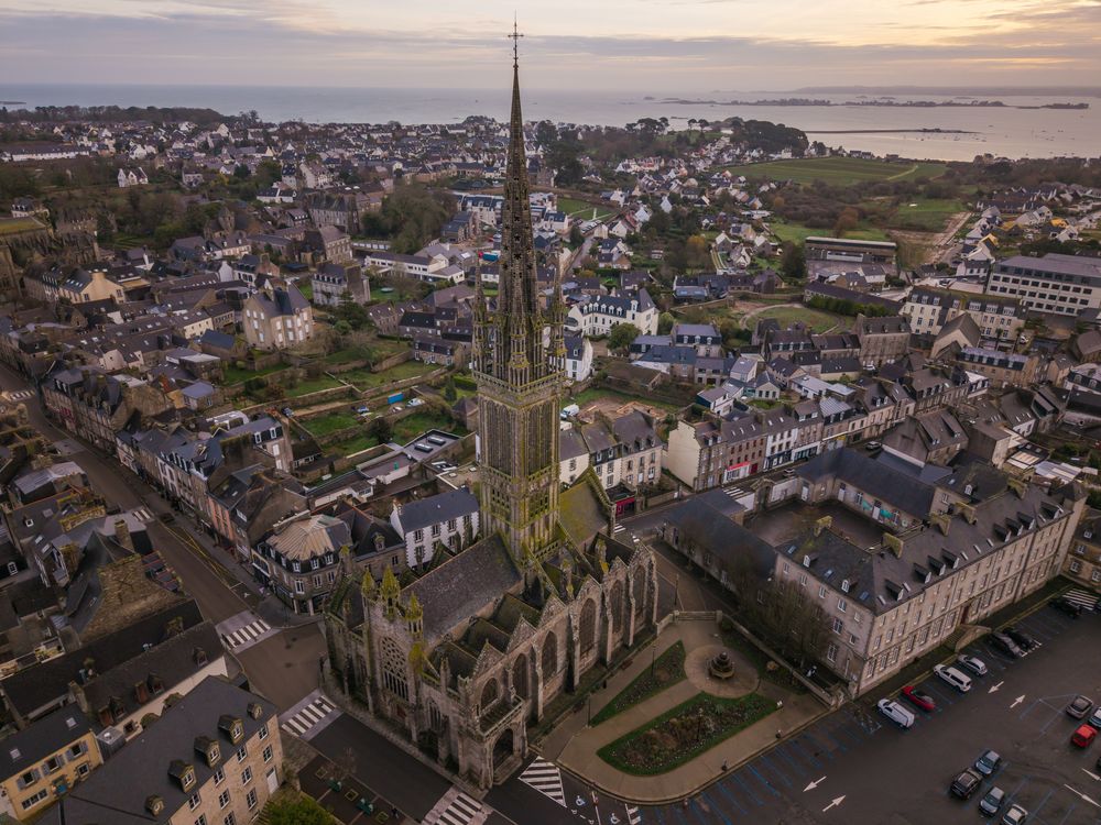 Considérée par Vauban comme « le morceau d’architecture le plus hardi » qu’il ait jamais vu, la chapelle du Kreisker se distingue par son clocher culminant à 78 mètres, l’un des plus hauts de Bretagne. Édifiée au XVe siècle sur les vestiges d’une chapelle détruite en 1375 lors du saccage de la ville, elle témoigne d’une histoire marquée par les conflits et les reconstructions. Son nom, signifiant « centre de la cité », rappelle son rôle structurant ancien. L’édifice présente des caractéristiques originales, mêlant fonctions religieuses, défensives et civiques, et conserve notamment une salle de garde médiévale. Aujourd’hui encore, il constitue un repère majeur du centre historique.