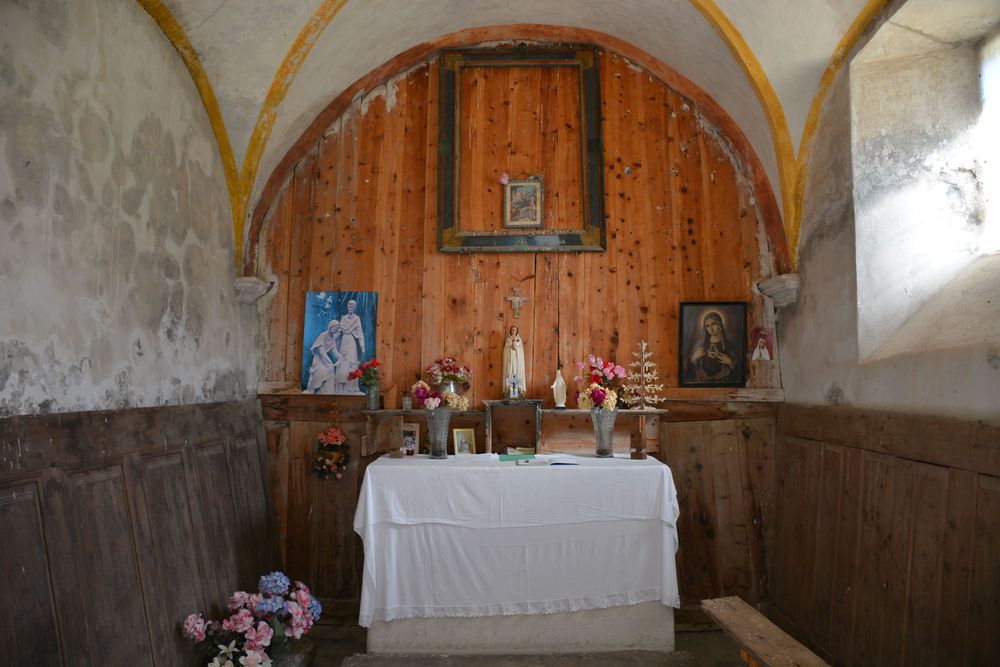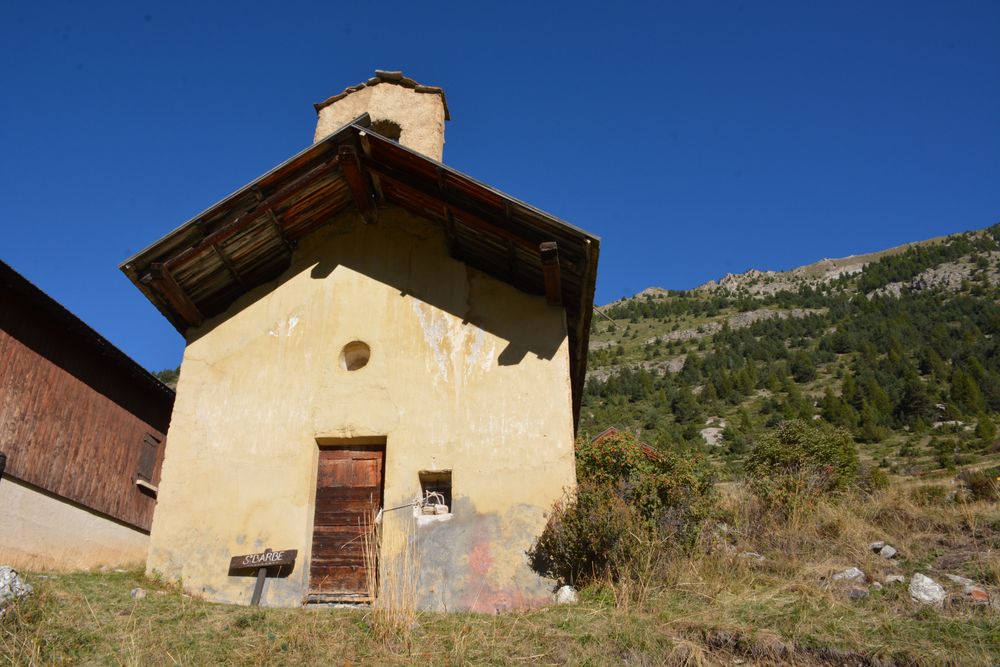 L'édifice présente des désordres dus pour l’essentiel à la stagnation de la neige, au rejaillissement des eaux de pluie en pied de mur et àla présence d’enduits ciment étanches qui bloquent le transfert de la vapeur d’eau dans les murs. La dégradation des murs intérieurs et des décors peints révèle l’imprégnation d’humidité au coeur de la maçonnerie. Le projet à revoir le terrassement en pied de façades pour une reprise d’étanchéité des murs enterrés, au décrépissage et à la pose d’enduit à la chaux sur le clocheton, ainsi que la préparation des murs extérieurs et intérieurs. La toiture sera également rénovée avec la réalisation de bardeaux en mélèze. Dans une phase future, la mise en place de vitraux et d’une cloche, ainsi que la restauration de la porte apporteront une touche finale à la restauration de la chapelle.