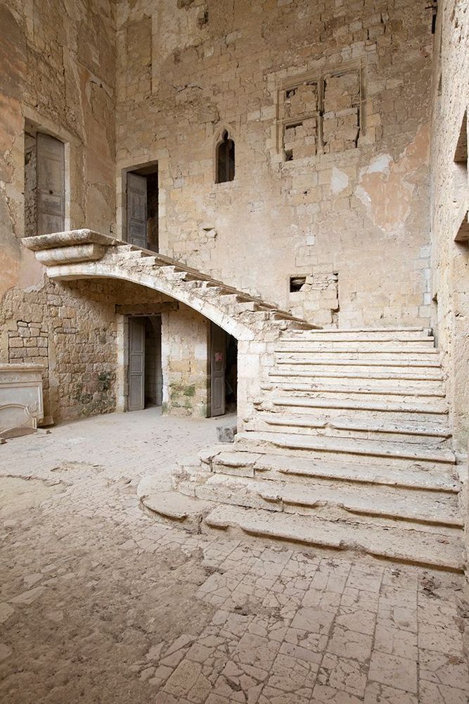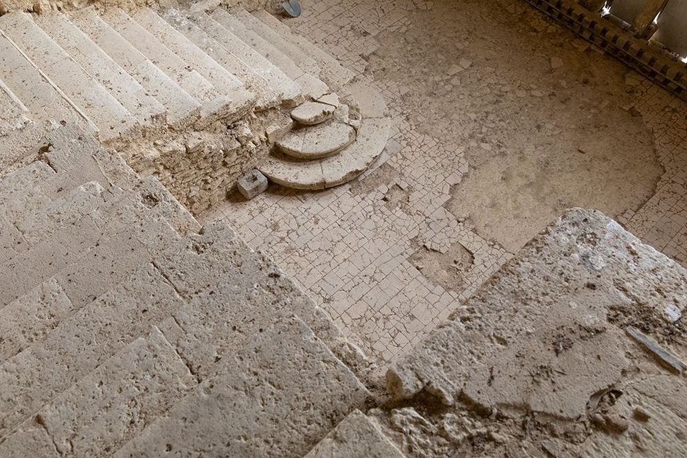 L’escalier de pierre, déjà en très mauvais état, fut dramatiquement abimé par la chute de la toiture.