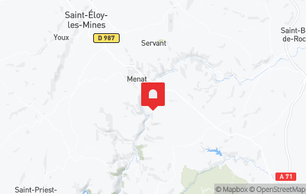 Surplombant de 483 m les gorges de la Sioule, perchée sur la falaise rocheuse, l’ancienne forteresse offre une vue imprenable sur le méandre de Rochocol et le pont de Menat. Cet ouvrage militaire fut édifié par Archambaud le Fort, seigneur de Bourbon dès 1078. Il a connu des ajouts ultérieurs, surtout au XIIe, mais a conservé un rôle éminemment stratégique, puisqu’il permettait de surveiller la traversée de la Sioule (pour laquelle il fallait s’acquitter d’un péage !) L’accès au château s’effectuait en trois temps : franchir la première porte, monter au château et pénétrer par un pont mobile franchissant le fossé et une porte percée dans l’enceinte extérieure, enfin franchir la barbacane pour arriver à la porte principale et son pont-levis.