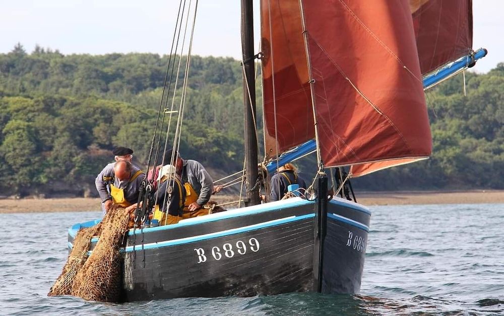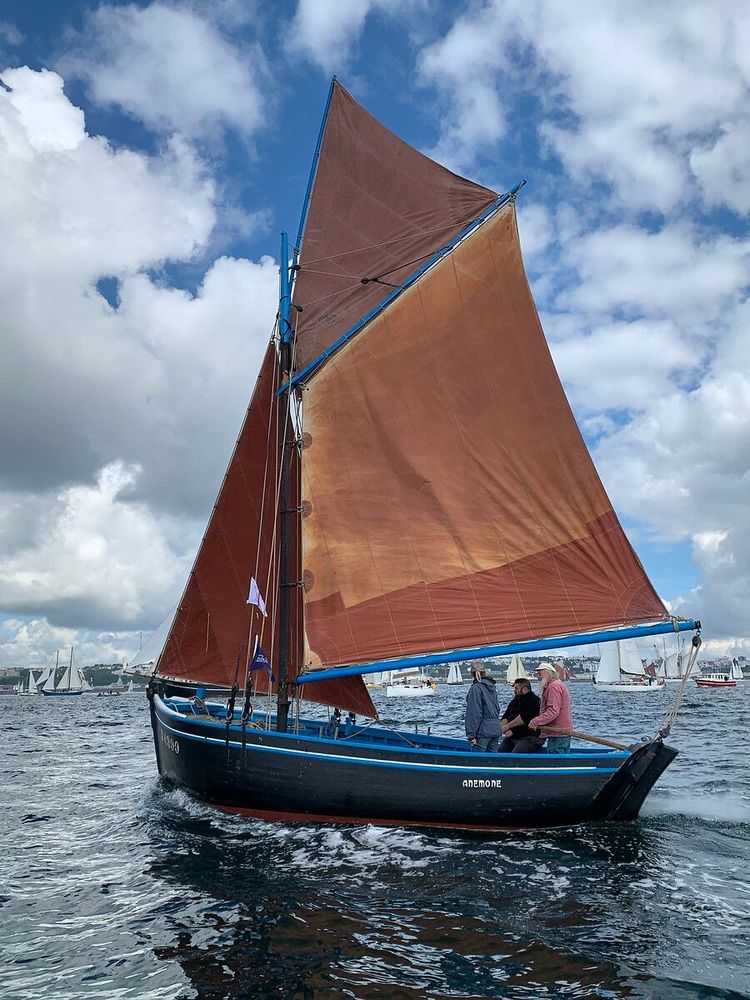 Au milieu du XXᵉ siècle, la rade de Brest abritait une intense activité de pêche à la coquille Saint-Jacques. Des centaines de coquilliers sillonnaient alors ces eaux riches en ressources marines. Basé à Lauberlac’h, sur la presqu’île de Plougastel-Daoulas, l’Anémone participait à cette flottille et draguait également huîtres, praires ou pétoncles lorsque les bancs de coquilles se raréfiaient. Dans ses premières années, il récoltait aussi le goémon rouge et le maërl. Aujourd’hui encore, ce bateau continue de naviguer en rade de Brest, offrant un témoignage rare de la pêche à voile traditionnelle qui a marqué l’histoire maritime locale.