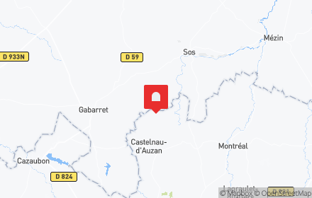 Elle est située dans le Lot-et-Garonne, au cœur de la forêt landaise, dans la vallée de la Gélise à 24 km de Nérac, secteur sauvegardé.