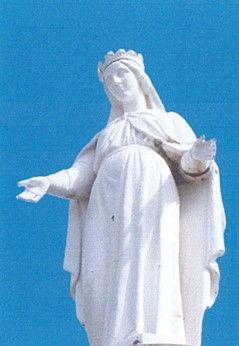 La Madone qui domine le village a été érigée en 1868. Sur un pilier de 12m de haut elle pesait 750 kg et c’est avec des bœufs qu’elle faut hissée au faîte de la colline.