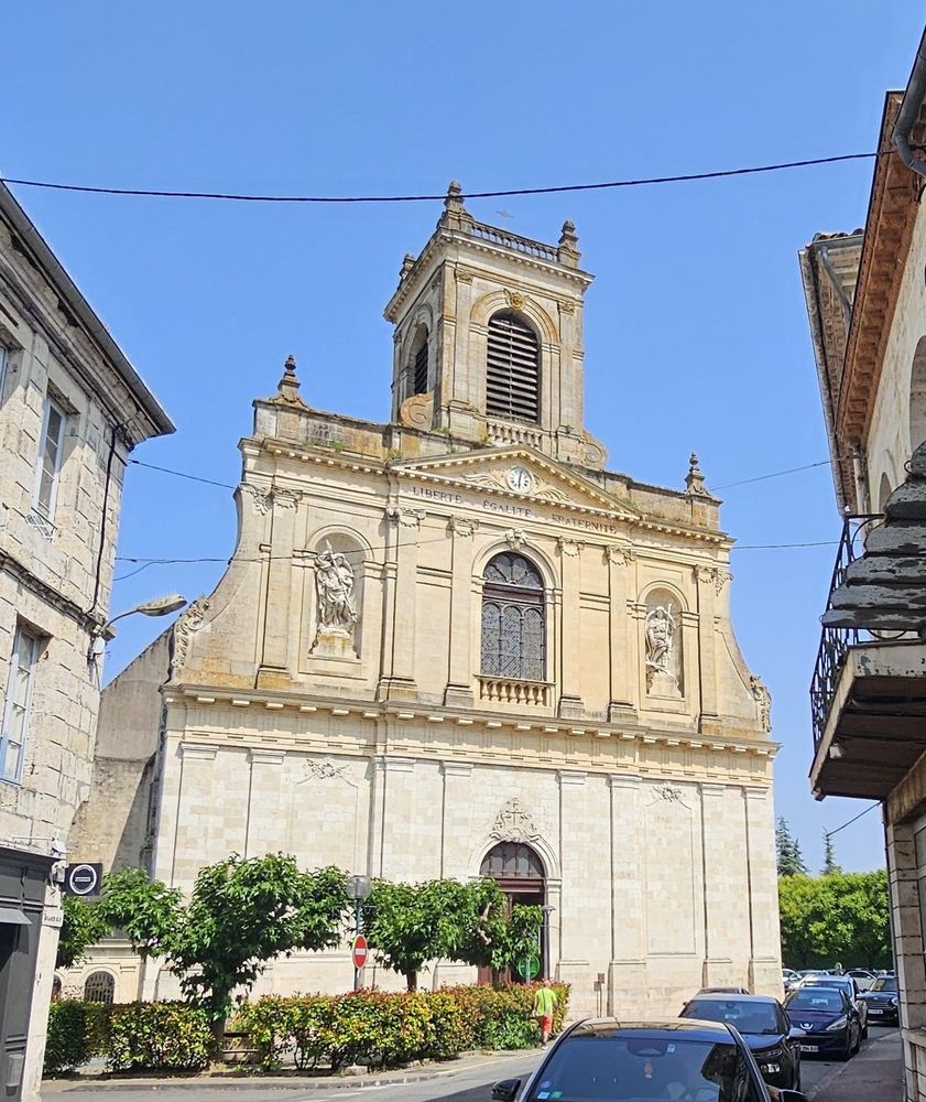 Une première église Notre-Dame, liée à la famille des Albret, aurait été construite au XIIᵉ siècle. Détruite en 1568 par les troupes protestantes lors de la troisième guerre de Religion, elle est reconstruite de 1682 à 1711 sur ses anciennes fondations, en partie avec des pierres de fortifications offertes par Louis XIII. La façade et le clocher ne sont toutefois achevés qu'en 1760. À l'intérieur, la deuxième chapelle à droite abrite la pierre tombale de Joseph Borne de Belair, premier architecte de l'église, mort en 1690 pendant les travaux. Le clocher et la façade sont entièrement repris en 1899-1900, avec l'aide financière de l'État, ce qui vaut à l'édifice de porter la devise « Liberté - Égalité - Fraternité ». Le choeur et le maître-autel sont restaurés en 1863-1864 ; ce dernier, surmonté d'une Assomption de la Vierge attribuée aux frères Mazetti, est inscrit à l'inventaire des objets protégés. La restauration intérieure la plus récente remonte à 1943. L'église est inscrite à l'inventaire supplémentaire des monuments historiques depuis 1998.