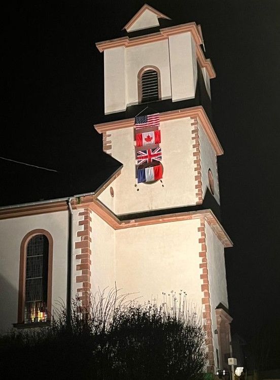 A l’origine, le clocher avait un toit. La flèche n'est érigée qu'à l'issue de la Seconde Guerre mondiale, l’église ayant subi d'importants dégâts lors des bombardements.