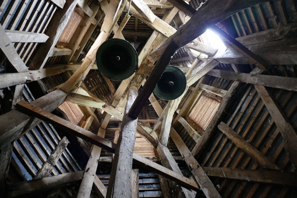 Le clocher et le beffroi présentent d'importants désordres au niveau de la charpente : déformation, bois rompus, altération biologique... La couverture d'ardoise est très dégradée favorisant l'infiltration des eaux pluviales et endommageant les pièces de charpente.
