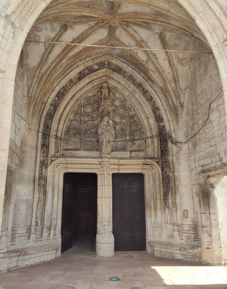 Le projet de restauration porte sur une statue en pierre peinte représentant la Vierge à l’Enfant, adossée au tympan du portail d’entrée de l’église Saint-Hilaire de Longeville-en-Barrois. Classée Monument Historique, cette oeuvre remarquable, sculptée sous un dais en calcaire, figure la Vierge de l’Apocalypse entourée d’un décor foisonnant de feuilles de vigne, de grappes, d’animaux et de personnages symboliques. Exposée aux intempéries, la sculpture présentait des altérations importantes : fissures, encrassement et pertes de matière. Afin de garantir sa conservation, la statue a été déposée par l’entreprise Socorebat Patrimoine et transférée dans l’atelier nancéien de Florence Godinot, restauratrice agréée des Monuments Historiques. Ce chantier constitue une étape essentielle dans la sauvegarde du patrimoine religieux et artistique de la commune.