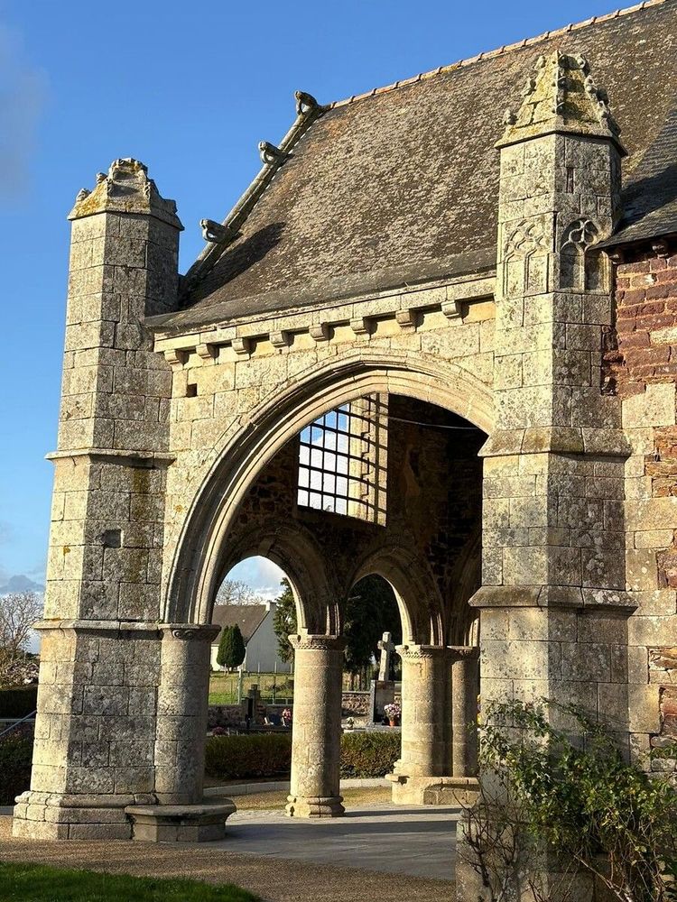 La tradition dit que le porche a été construit pour accueillir les lépreux, deux lieux dits renforcent cette théorie : «La Ville ès Malades» léproserie brulée en 1591 et «Fontainbrun» avec une fontaine bienfaisante.