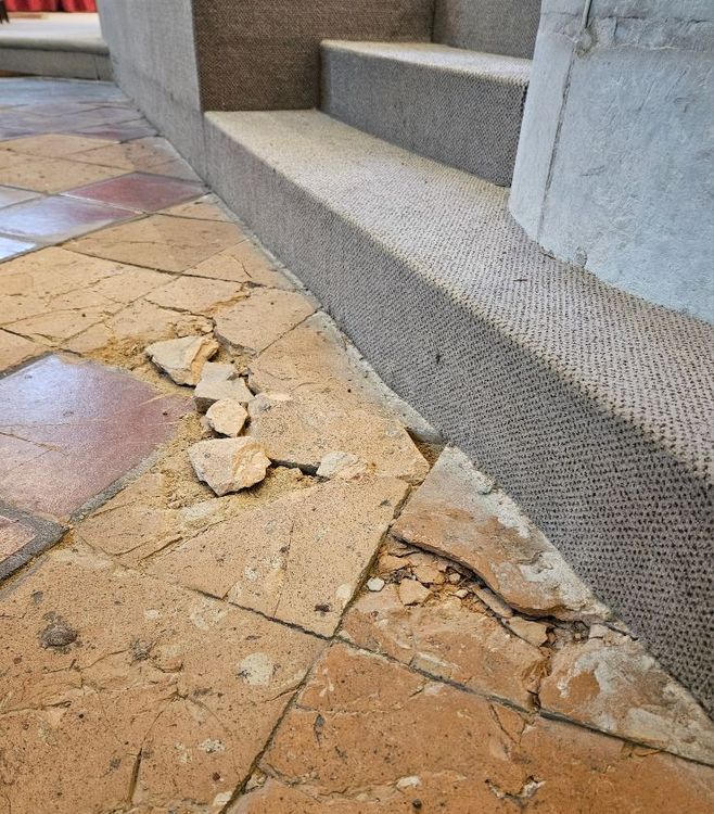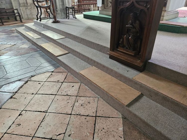 Le chœur de l'église a été transformé suite au concile Vatican II dans les années 60 : le pavage ancien a été recouvert d'une grande estrade en aggloméré de bois. Sur cette estrade recouverte de moquette a été avancé le maître autel représentant le martyre de Jean le Baptiste. Cette estrade s'est dégradée au fil du temps, en particulier à cause de l'humidité enfermée dans cette espace clos. La base des piliers s'est effritée, de nombreuses planches de bois vissées sur la moquette empêchent de passer à travers cette estrade, le pavage par endroits s'est affaissé. Le projet de restauration du chœur, projet de sauvegarde, est né d'une urgence de travaux à réaliser notamment sur l'emmarchement vers l'autel, qui, doté de sa moquette cache-misère, s'effondre et constitue un danger pendant les offices. L'étude menée avec l'aide d'experts et d'architectes du Patrimoine a montré que ce projet exige plusieurs nécessités : la création d'un nouvel emmarchement plus pérenne, le déplacement de l'autel actuel et du tabernacle, la création d'un nouvel autel répondant mieux aux exigences liturgiques contemporaines. Les anciennes stalles remisées dans le transept seront remises en place dans le chœur après restauration.