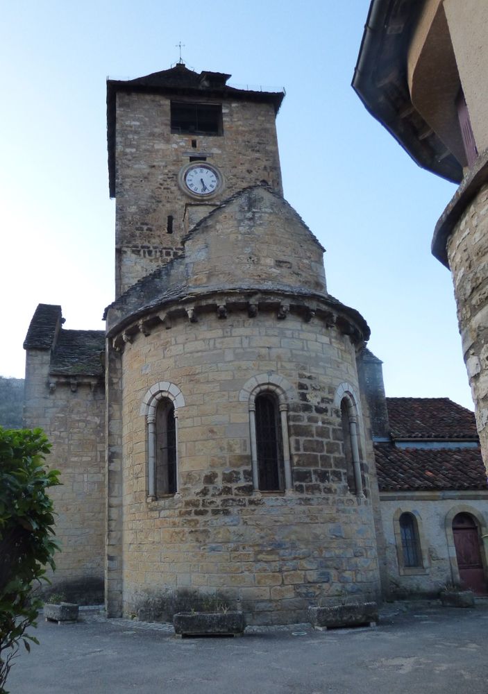 Suite à la donation, par le seigneur de Banze d'Autoire, de la chapelle castrale du bourg au chapitre de Cahors, afin qu'un de leurs enfants y fût nommé chanoine, il fût édifié fin du XIème siècle une église romane qui formait avec le château seigneurial la fortification surplombant le ruisseau Autoire. Pendant la guerre de 100 ans, il fut procédé à la fortification de l'église et à la surélévation du clocher qui servait de refuge aux villageois lors des invasions ou pillages. Pendant les guerres de religion la nef romane fût endommagée : composée initialement d'un vaisseau de 2 travées, elles fût reconstruite à l'identique mais avec l'ajout d'une troisième travée. Au XIXème siècle, réfection de l'église et rajout de 2 collatéraux suite à l'augmentation de la population.
