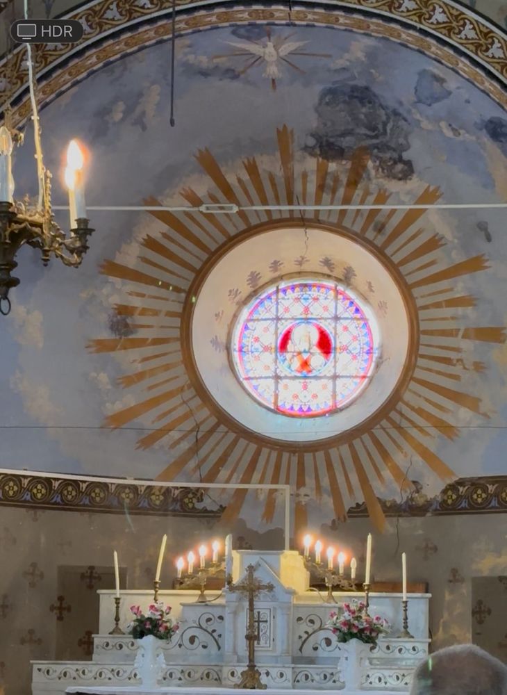 L'église est dite romane, mais le cloche et la sacristie seraient des constructions des années 1880 à 1885. Le marbre de l'autel est du XVIIIe siècle et le tabernacle de marbre blanc du XIXe.