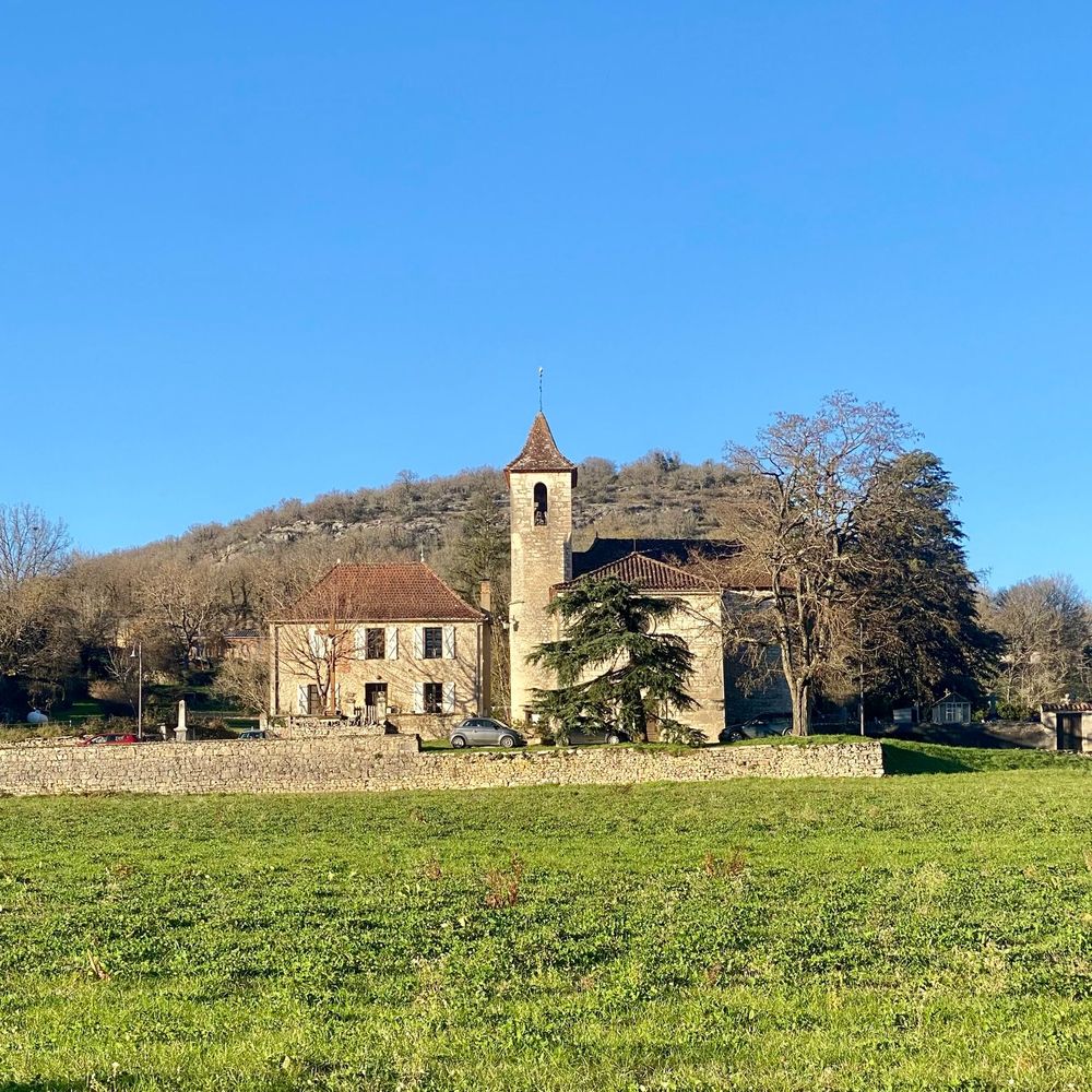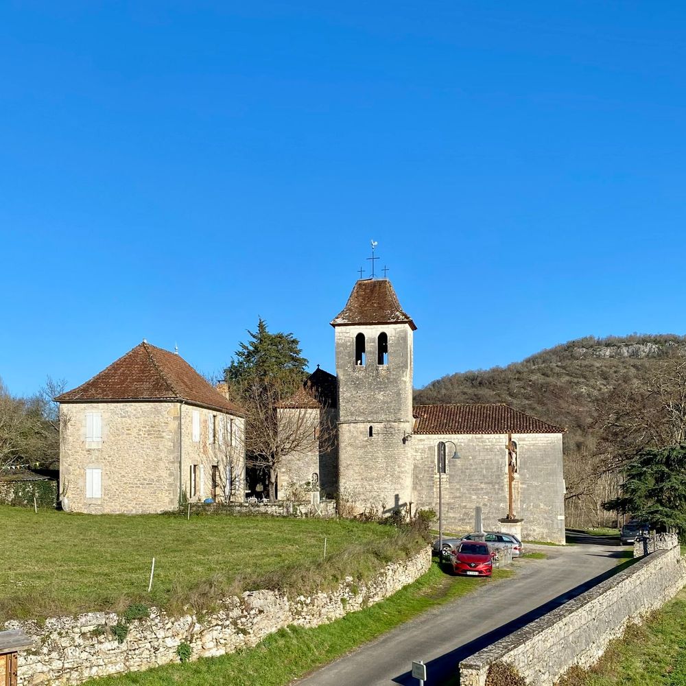 Le village de Brengues, situé dans la vallée du Célé, s’inscrit au cœur du Parc naturel régional des Causses du Quercy, un territoire qui façonne l’identité de ses paysages et de son architecture. Édifiée au début de l’époque romane, l’église Saint-Saturnin se distingue par son clocher aux angles arrondis, caractéristique rare de cet édifice ancien. Son entrée actuelle, surmontée d’un fronton triangulaire portant une devise dédiée à la Sainte Trinité, évoque l’architecture des temples réformés et pourrait dater des guerres de Religion, période durant laquelle la paroisse de Brengues aurait choisi le camp protestant. À l’intérieur, plusieurs pierres tombales du XVIIIème siècle rappellent que l’église a accueilli des inhumations jusqu’à la veille de la Révolution française, soulignant son rôle central dans l’histoire du village.