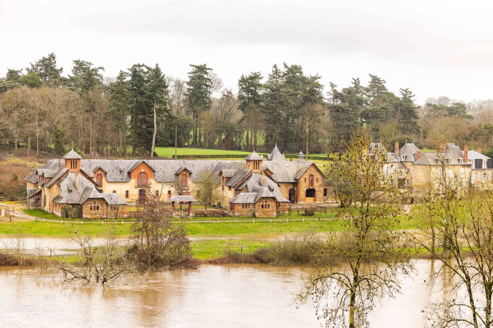 Transformé au XIXe siècle en domaine agricole modèle, le château de La Valette et son environnement illustrent l’évolution des pratiques rurales et techniques de l’époque. Dès 1860, les communs, voulus par le comte Marie-Charles Sourdille de la Valette pour ses vaches Durham, sont conçus pour allier fonctionnalité et modernité. Le site est alors partiellement édifié sur d’anciennes dépendances visibles sur le cadastre de 1829. Inspirés des fermes-modèles, ils présentent une organisation rationnelle : trois ailes en équerre ouvrant sur une vaste cour vers la Mayenne, avec la buanderie proche du château. L’architecte reste inconnu, mais l’ensemble se distingue par son ampleur et sa modernité.