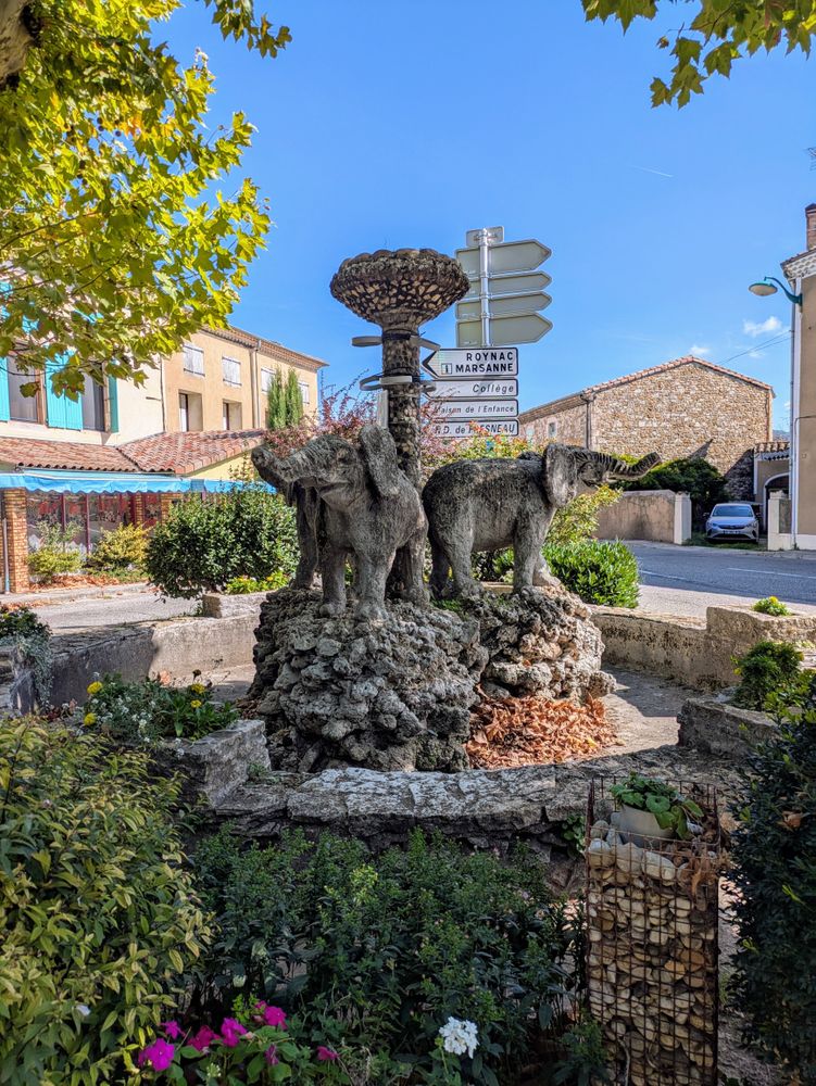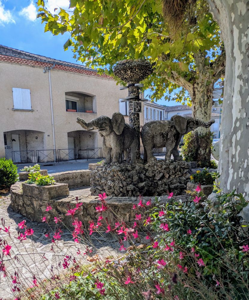 La fontaine aux éléphants interpelle de nombreux visiteurs, occupant le rond-point au carrefour de la route de Puy-Saint-Martin et du Boulevard de Provence.