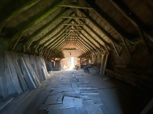Ce corps de ferme est massif et présente des éléments structurels intéressants tels que la porte de l’étable qui dessine une arche.