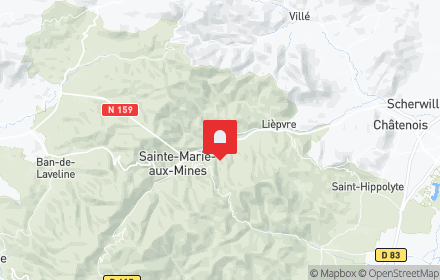 L'Hôtel de Ville de Sainte-Croix-aux-Mines a conservé de nombreux éléments de son aménagement originel de la fin du 19e siècle. Les fenêtres sont dotées de vitraux représentant de nobles personnages et la toiture comporte des pignons d'ornements et des lucarnes décorées d'épis sculptés en bois.