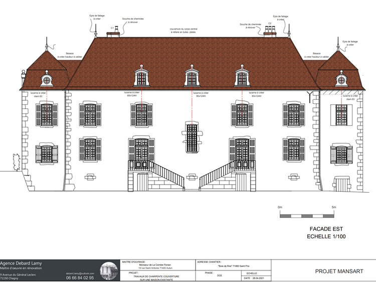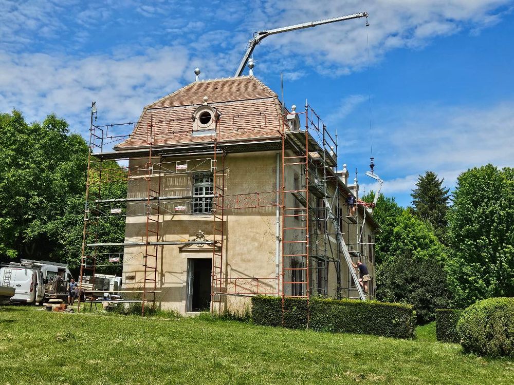 Le manoir de Bois de Rire a été altéré au XIXème et au début du XXème siècle et est en mauvais état : remplacement des tuiles d'origine par de l'éternit et de l'ardoise, pavillons latéraux et lucarnes modifiés, éléments disparus. L'objectif de la restauration est de restituer une architecture en cohérence avec son origine. Après une première tranche de travaux réalisée en 2024 et début 2025 qui a permis la restauration et la restitution des toitures Ouest et du pavillon Nord, de lucarne et ½ils-de-b½uf réalisés à partir de granit de la carrière d'origine, une deuxième tranche, initiée en 2025, porte sur la toiture du pavillon sud et de la toiture Est, une partie des enduits.