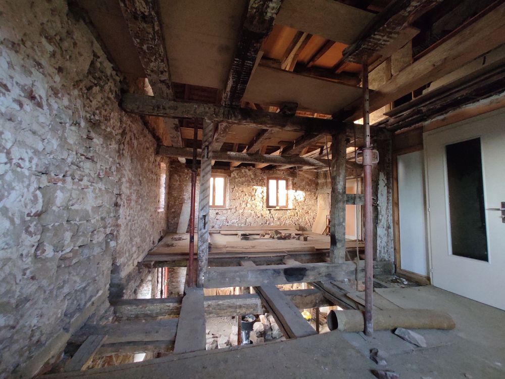 Le projet vise à restaurer et pérenniser le bâti ancien tout en lui redonnant une performance énergétique adaptée à un usage contemporain. Les travaux prévoient la restauration structurelle du gros œuvre, la réhabilitation des éléments dégradés et la mise en œuvre d’une isolation naturelle respectueuse de la construction existante. Gros œuvre et charpente, menuiseries extérieures et façades seront restaurés de façon patrimoniale et traditionnelle.