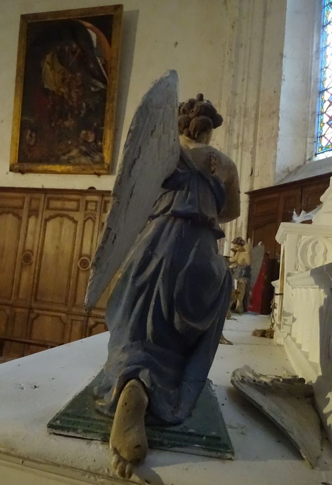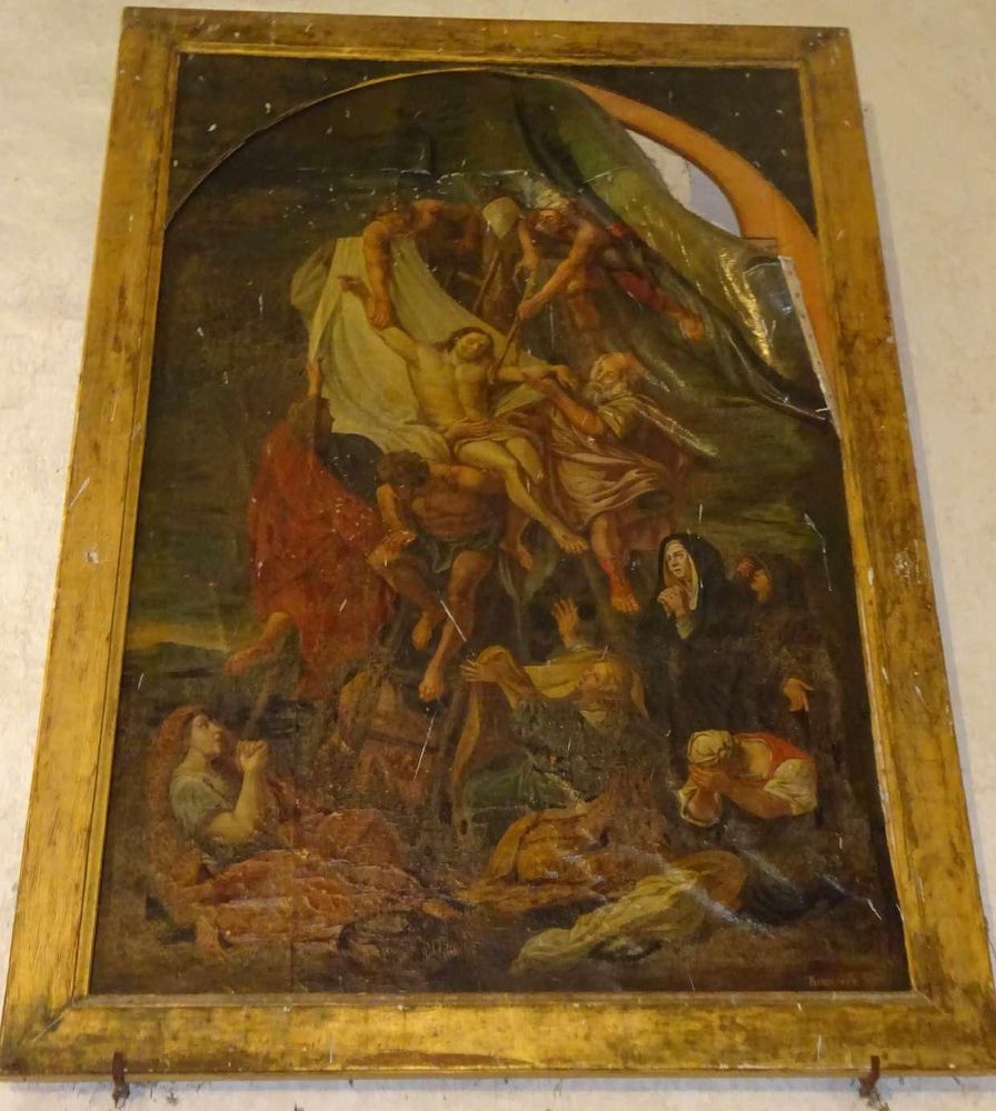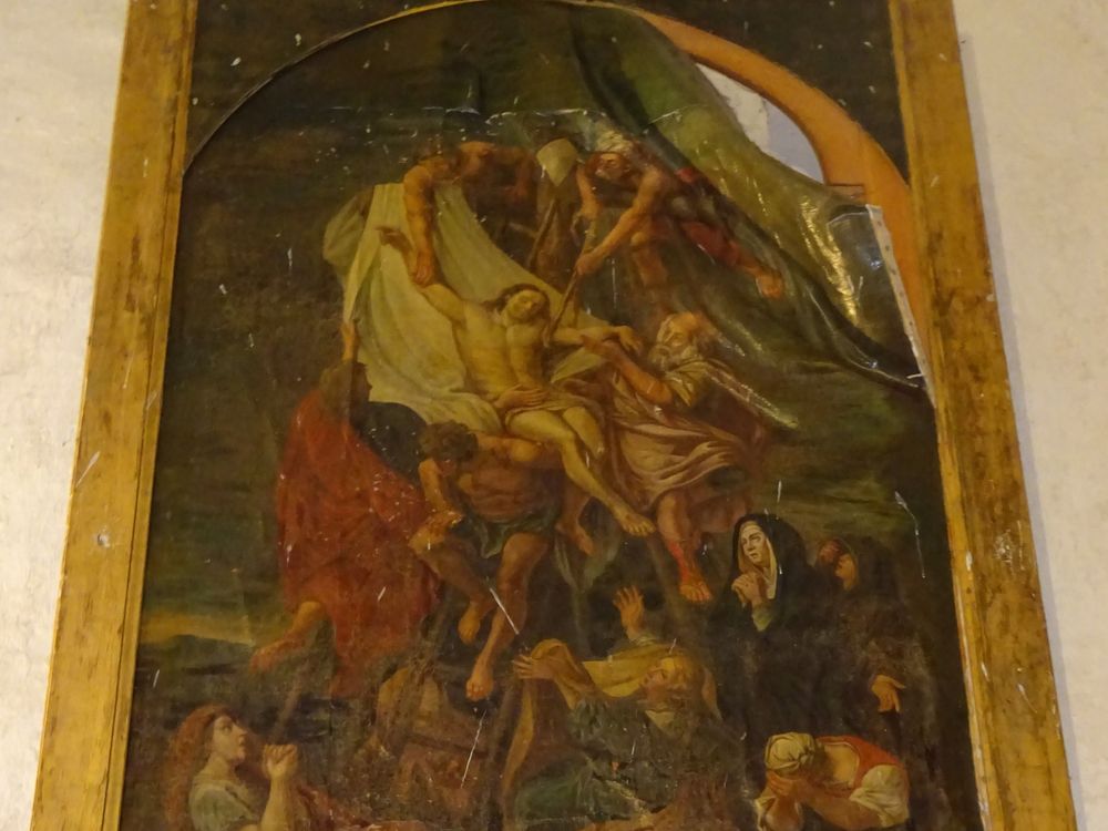 Inscrits aux Monuments historiques, le tableau de la Descente de Croix et deux anges adorateurs en bois polychrome, situés dans l’église Sainte-Anne d’Annay, font l'objet d'un programme de sauvegarde en raison de leur état de conservation préoccupant. La toile du tableau présente un important décollement, affectant près d’un tiers de sa surface et provoquant des craquelures de la couche picturale. Les deux statues sont fragilisées par des pertes de matière et une attaque d’insectes xylophages. Sans intervention rapide, ces œuvres majeures du patrimoine communal risquent des altérations irréversibles. La restauration prévoit la dépose, le rentoilage, le nettoyage et la reprise des lacunes pour le tableau, ainsi que le traitement, la consolidation du bois et la restitution de la polychromie pour les statues.