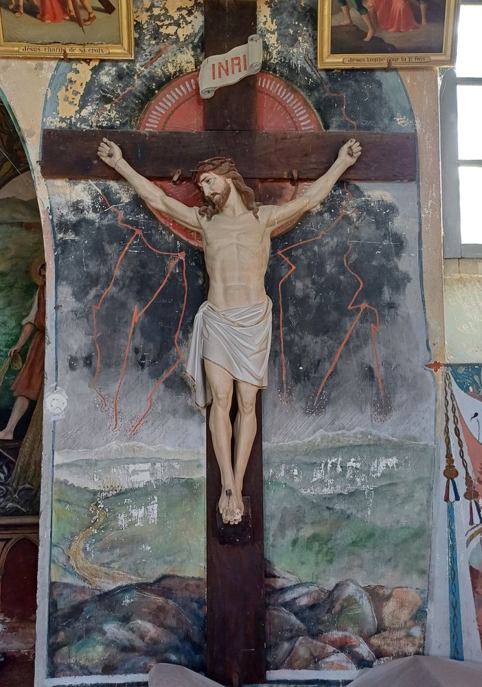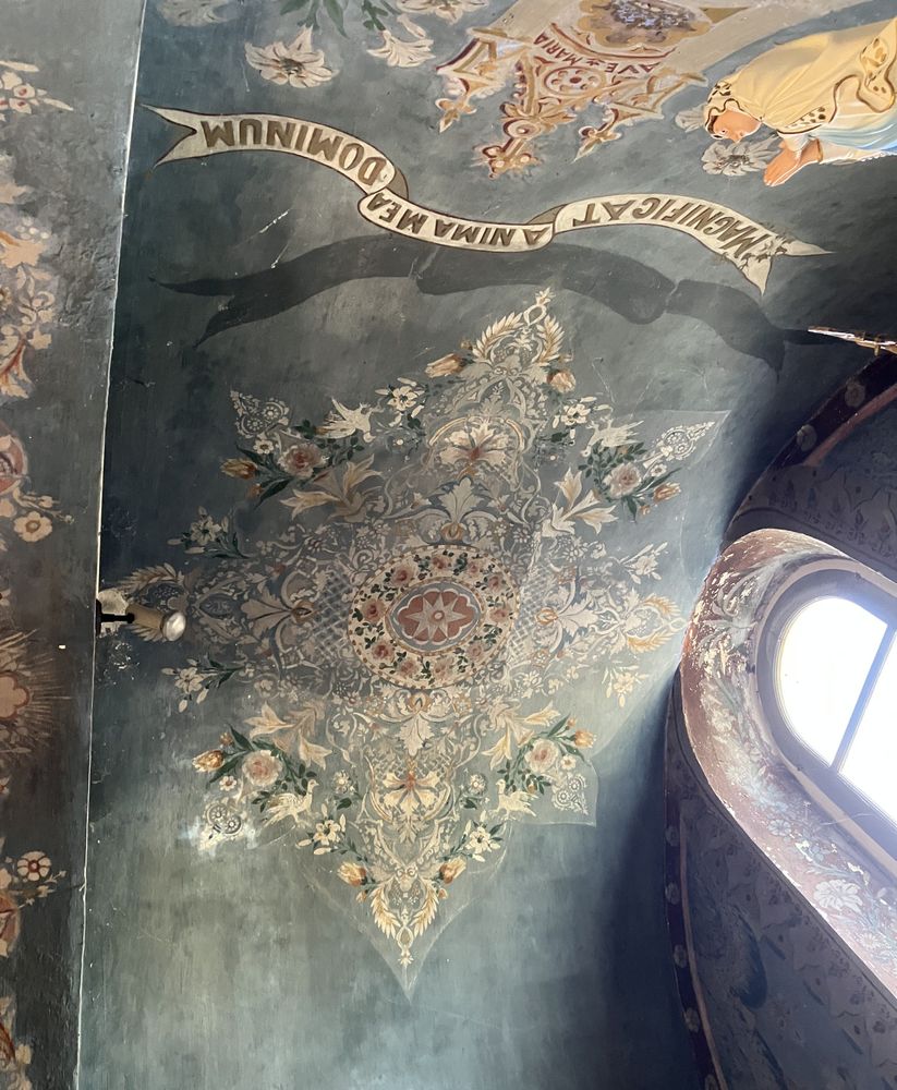 Enfin, le plafond de la chapelle Notre-Dame a été maladroitement réparé au mortier de ciment et non repeint.