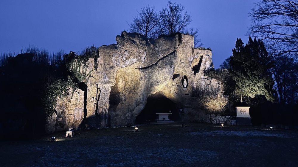 La réplique de la Grotte de Lourdes, nichée dans l'écrin de verdure du Parc Sainte Marie à Chaumont, est un lieu de pèlerinage et de mémoire cher au coeur des habitants. Elle est un havre de paix, mais une fois le soleil couché, elle disparaît dans l'ombre.