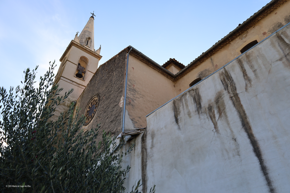 L’église Saint-Antoine de Padoue, remarquable édifice néoclassique de Cuges-les-Pins, nécessite aujourd’hui une restauration indispensable. Malgré quelques interventions récentes, son état s’est progressivement dégradé. Un diagnostic communal a permis d’identifier les urgences : la dépose complète de la toiture, le remplacement des poutres endommagées, le nettoyage ou changement des tuiles, ainsi que la remise en état des gouttières et l’installation d’un drain pour assainir les abords. À l’intérieur, les travaux comprendront la dépose des crépis, le traitement des murs pour éliminer les sels, puis la réalisation d’un enduit final.