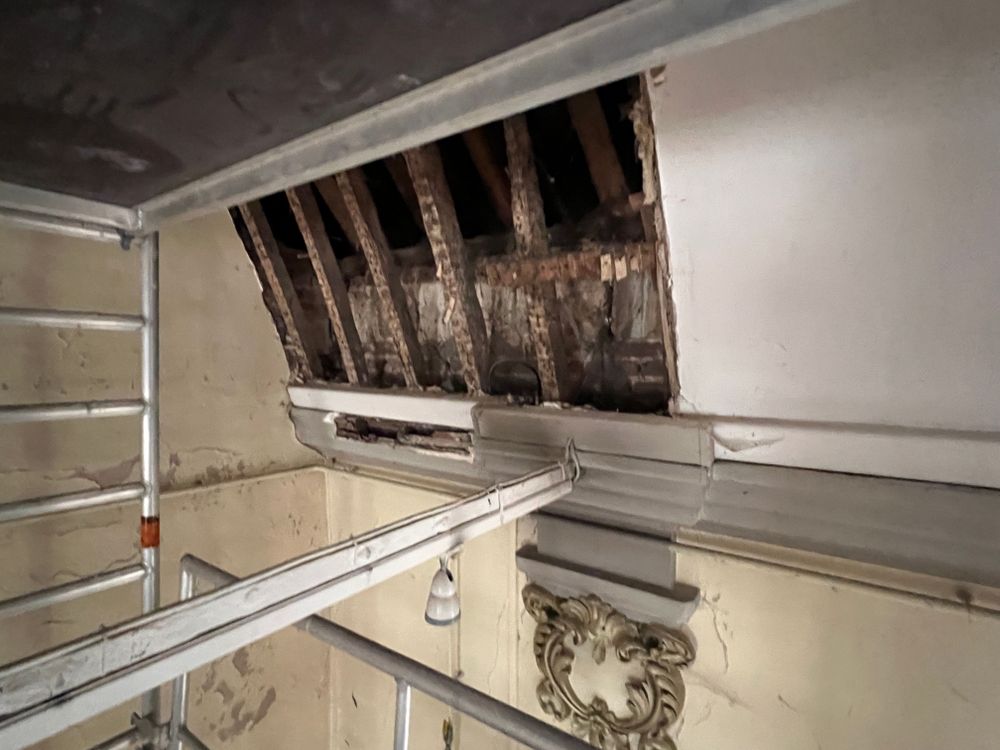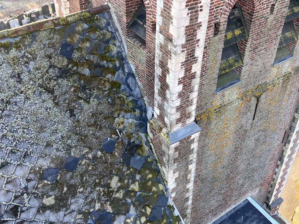Les désordres y sont critiques et présentent le plus grand danger structurel : la couverture en ardoises est défectueuse et l'ensemble de la charpente du clocher est très dégradé. Il est impératif de consolider et de restaurer la structure en bois des cloches et de remettre l'édifice hors d'eau. Cette première tranche, estimée à 257 000€ HT, est la priorité absolue.