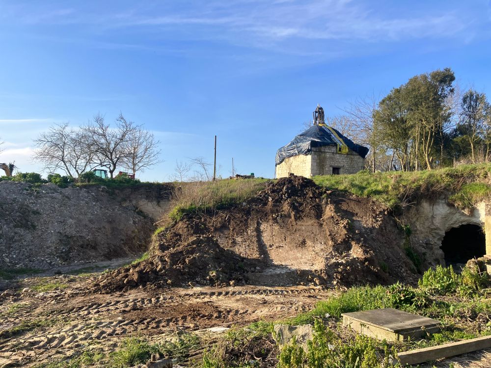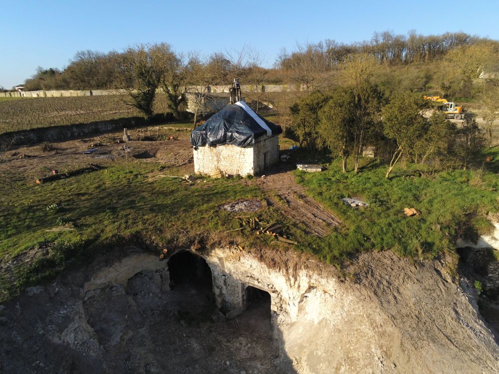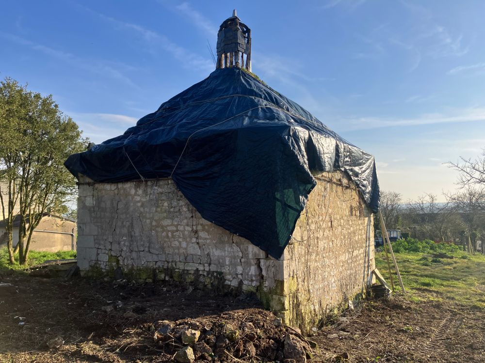 Le pigeonnier dont la particularité est d’être semi-enterré, semble dater des XVII ou XVIIIe siècles. Il représente un magnifique objet architectural, mais il est mis à mal par des problématiques de poussées de voûtes assez préoccupantes. La coupole du pigeonnier est en ruine et le déchaussement des claveaux toujours plus engagé, laisse craindre un effondrement du dernier obstacle garantissant une certaine intégrité aux maçonneries inférieures. Si la coupole s’effondre, alors les eaux de pluies gagneront le cœur des ouvrages maçonnés et la perte sera bien plus lourde. Il est donc urgent d’agir pour contrer le processus de ruine en cours et permettre la sauvegarde de ce bel exemple d’architecture soignée et ouvragée. La toiture initiale du colombier était conçue à quatre pans à la manière des pavillons, couronnée d’un lanternon. Si la quasi-totalité de la couverture a disparue, la charpente elle, bien que lacunaire, présente aujourd’hui encore de nombreux vestiges qui permettent une bonne lecture de l’ouvrage. L’ensemble du clos et du couvert doit faire l’objet de travaux importants et urgents.