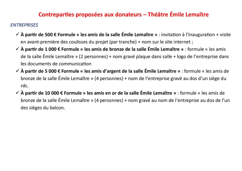 Contreparties précédentes + nom inscrit dans le Théâtre