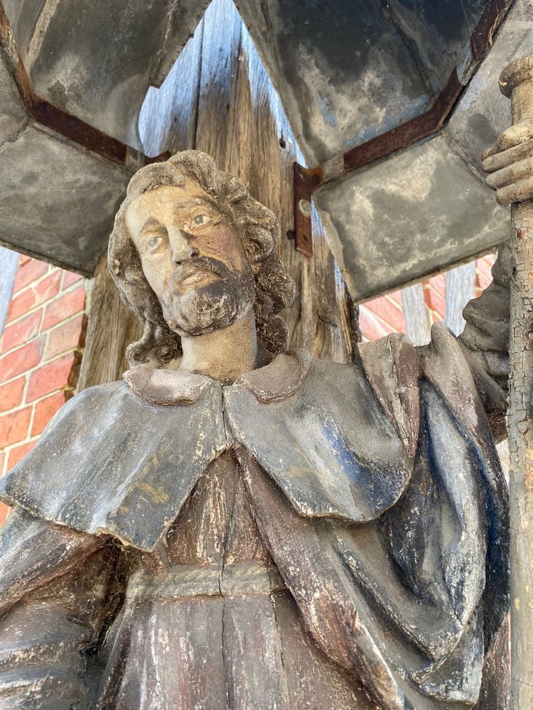 Visible à l'angle de la Maison Renaissance de Bar-sur-Seine, la statue en bois polychrome de saint Roch et de son chien témoigne du raffinement de l'art du XVIe siècle. Installée en façade, elle subit depuis plusieurs décennies les effets du temps et des intempéries : altération des pigments, fissures, pertes de matière. Les travaux, menés sous la maîtrise d'un restaurateur spécialisé, viseront à stabiliser l'ensemble et à restituer les teintes d'origine. Soutenez ce projet de restauration qui permettra de redonner éclat et lisibilité à cette oeuvre exceptionnelle, emblème du patrimoine local.