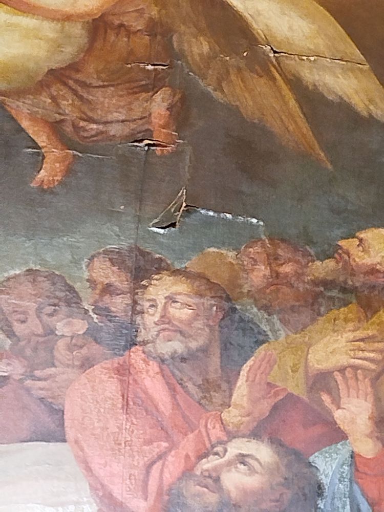 L’église de Vogüé abrite un tableau monumental de 3,45 m par 2,20 m, représentant l’Assomption de la Vierge, peint en 1820 par l’artiste italien Antonio Molinari. Aujourd’hui, cette œuvre remarquable, estimée à 25 000 €, souffre de multiples dégradations : déchirures, trous, soulèvements de la matière picturale et altération du vernis, dues en grande partie à son exposition directe au soleil. La restauration prévue vise à sauvegarder ce patrimoine unique, à l’installer au-dessus de l’autel avec un éclairage adapté et à l’accompagner d’une plaque explicative retraçant l’histoire du tableau, de l’église et des donateurs.