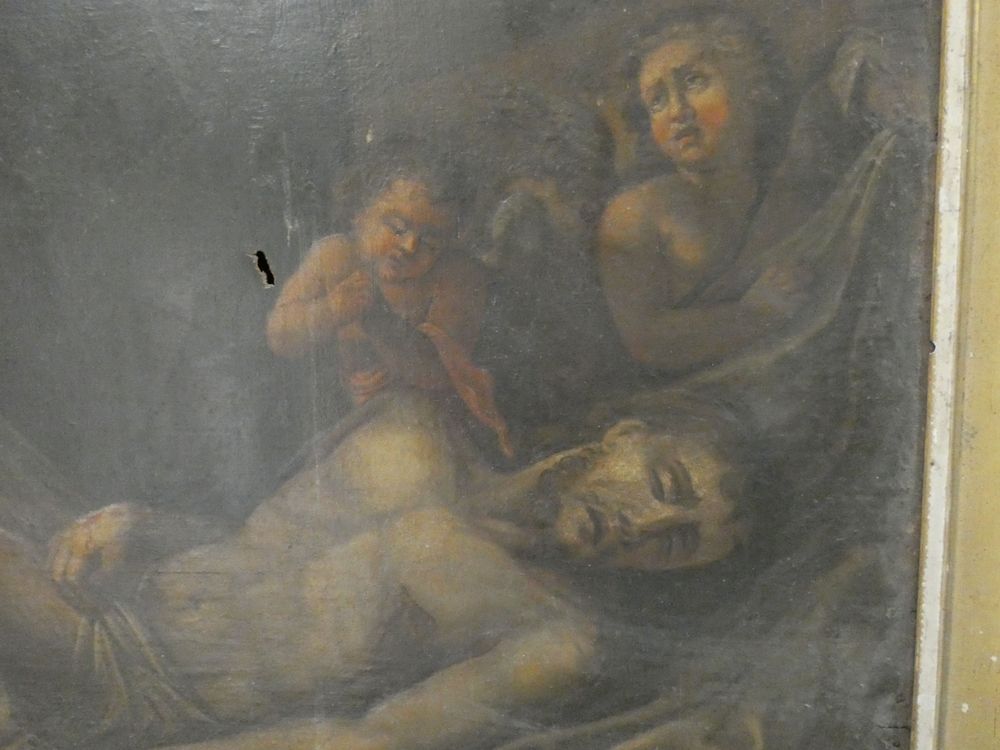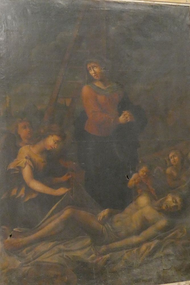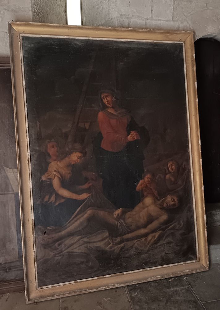 La commune s’engage dans une campagne de dons pour restaurer le tableau La Déploration du Christ, conservé dans l’église Saint-Pierre-aux-Liens. Aujourd’hui, l’œuvre est gravement fragilisée : châssis attaqué par les insectes xylophages, toile affaiblie et encrassée, vernis jauni, cadre en bois doré du XIXe siècle abîmé et lacunaire. La restauration comprendra pour la toile: consolidation du support, nettoyage, retrait du vernis altéré et des anciennes retouches, traitement des lacunes, aplanissement et protection du dos. Pour le cadre : traitement anti-xylophage, reprise des assemblages, restitution des dorures et des motifs d’origine. Chaque contribution permettra de préserver ce témoin d’art et de foi, et de redonner toute sa beauté à ce chef-d’œuvre.