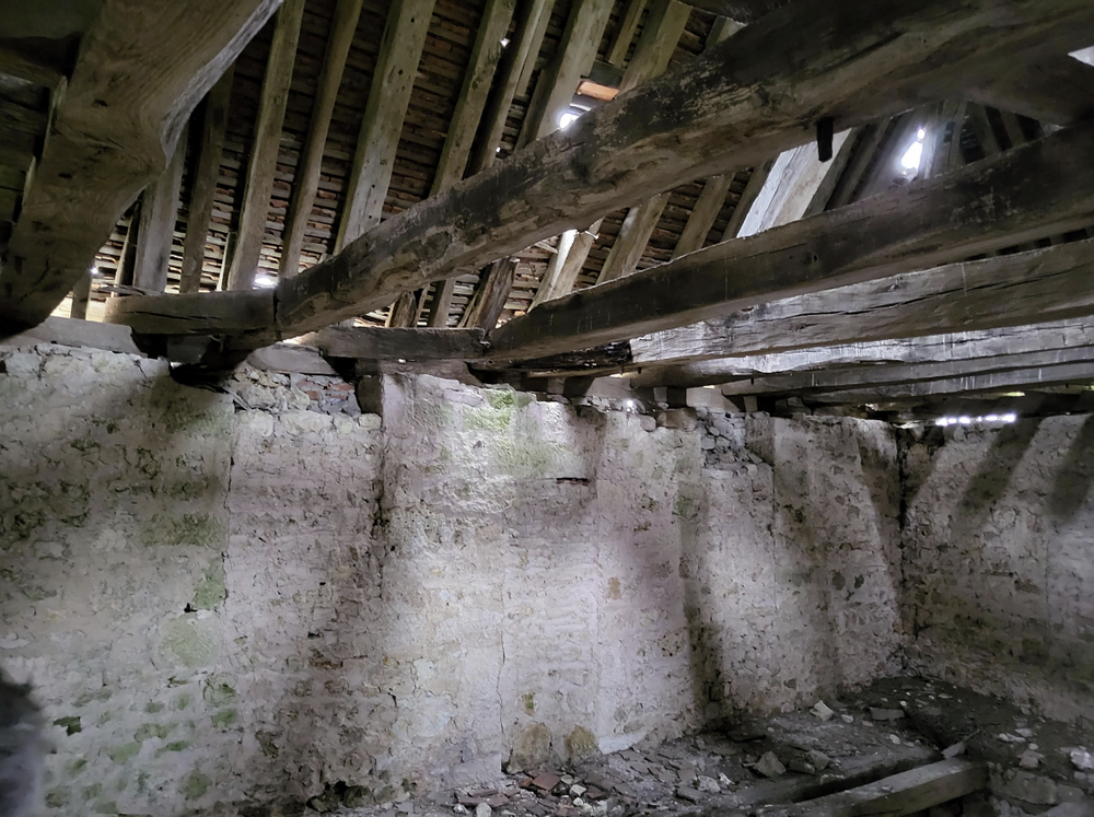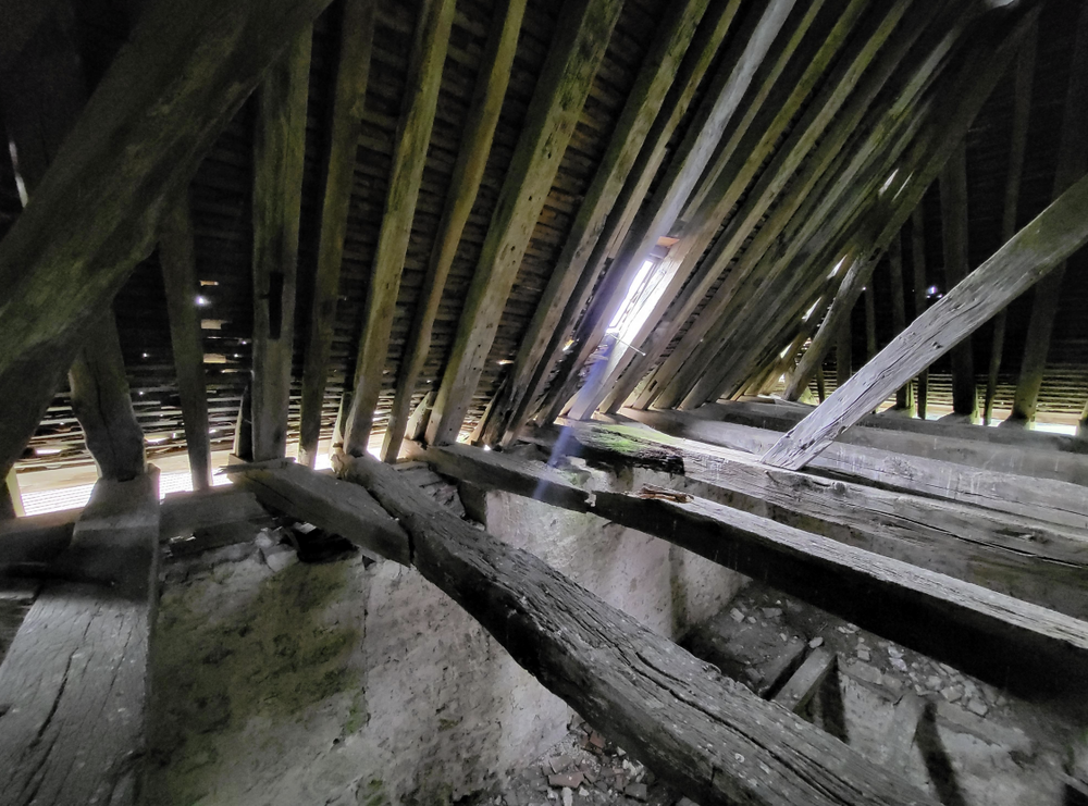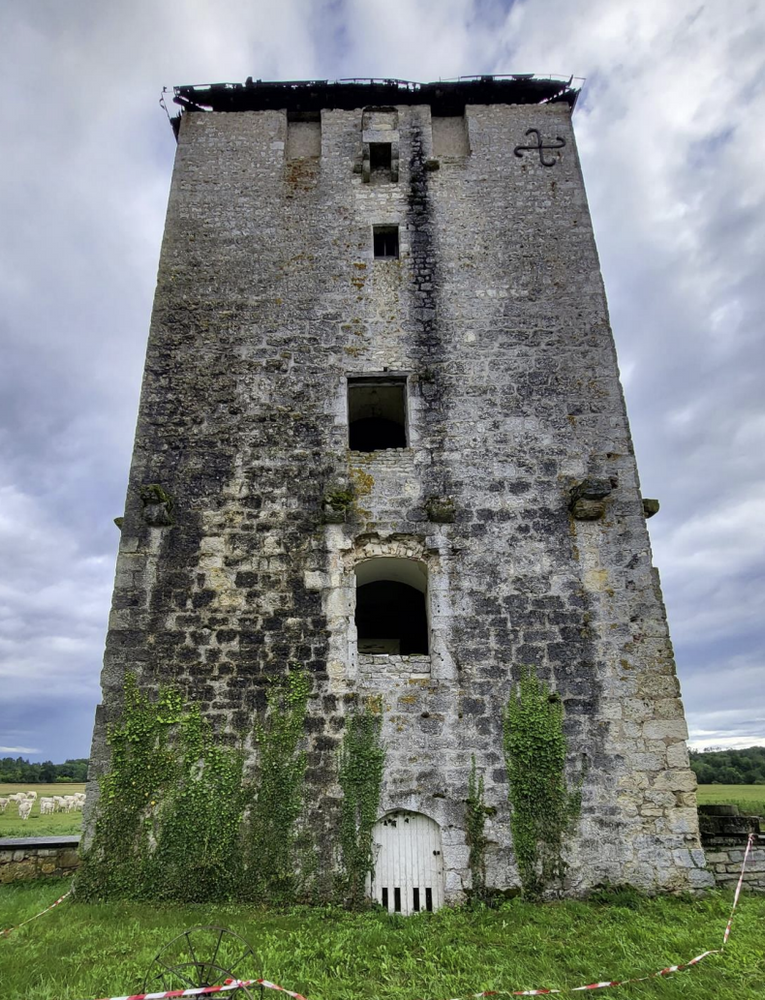 La tour du château, vestige du début du XVIIIe siècle, présente aujourd’hui un état de dégradation avancé. Le toit est très détérioré, provoquant d’importantes infiltrations d’eau. Certaines parties de la charpente sont hors service, faisant peser un réel risque d’effondrement et rendant la tour inaccessible au public. Le projet prévoit la restauration de la couverture afin de sécuriser durablement l’édifice. Les travaux consistent au remplacement à l’identique des bois de charpente défectueux, à la réalisation de greffes, au changement des tuiles plates en terre cuite et du faîtage, ainsi qu’à la réfection et au remplacement des linteaux bois des façades nord et sud. La pose d’un paratonnerre viendra compléter cet ensemble pour garantir la protection du bâtiment.